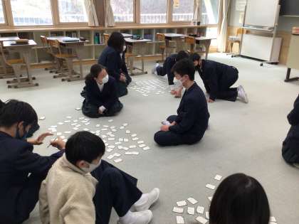 1年生は国語で百人一首を行いました。