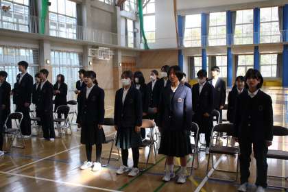 修了式の準備を素早く行い、時間があるからと校歌の練習を自主的に行っていました。すばらしいです!