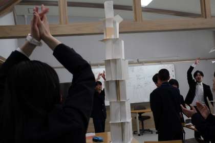 中学校生活最後の1年がスタートしました!毎年恒例のペーパータワーで開幕です!