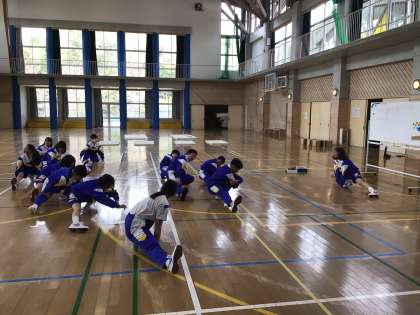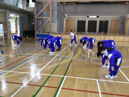自分たちで号令をかけ準備体操をしています