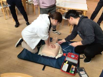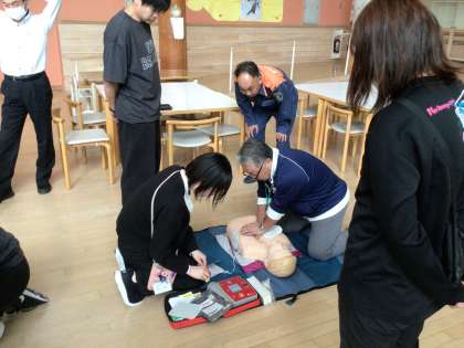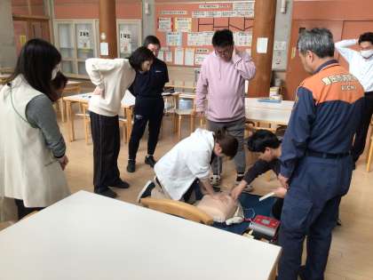 教職員のシミュレーション訓練 公開日 2025/05/13 更新日 2025/05/13 活動の記録 生徒下校後に教職員のシミュレーション訓練を行いました。消防隊員の方に心肺蘇生法を改めて教えていただきました。
