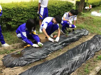 2年生がハラペーニョの定植を行いました!