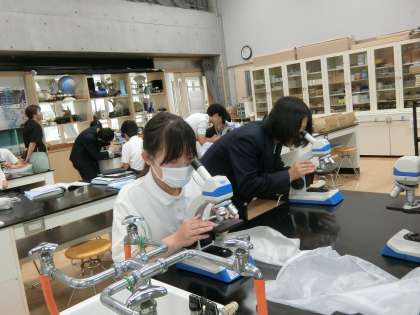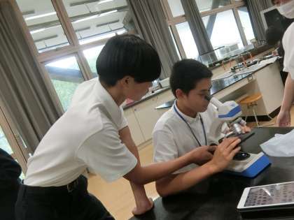 3年生の理科の授業です!なにやら顕微鏡を覗いています。