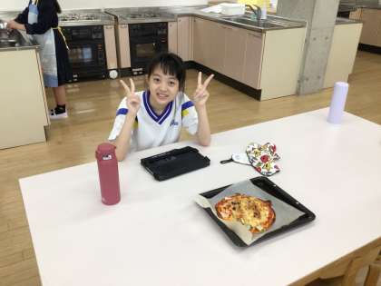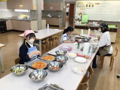 自分たちが育てた野菜でピザを作りました。おいしくできたね!