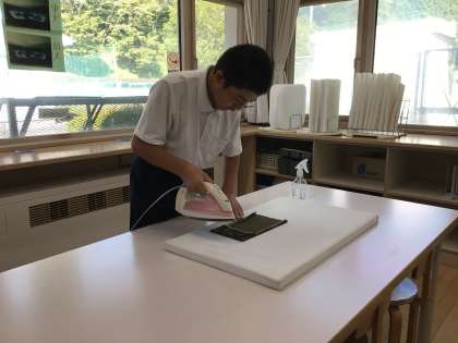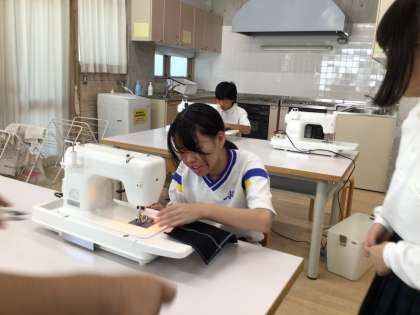 ミシンを使ってエコバックを作っています。