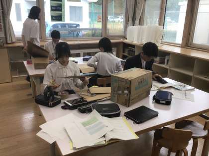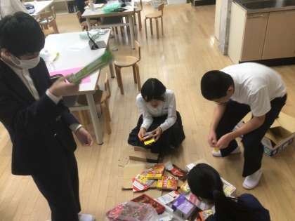 家庭科の授業です!保育実習で園児と遊ぶためのおもちゃを作ります!