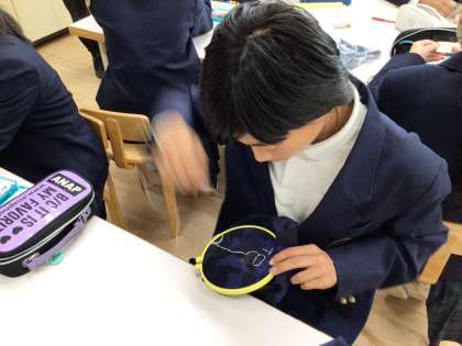 エコバックに自分の好きな文字や絵を刺繍しました。