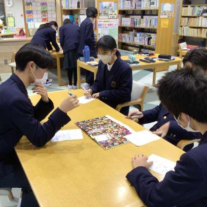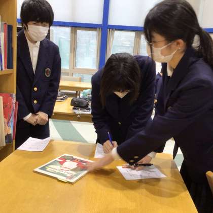 3年生が英語の絵本を読んでいます!図書館司書さんがつくった英語の絵本ビンゴに挑戦しています!
