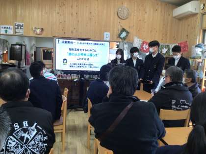 わくわく事業の報告会をしよう! 公開日 2025/12/12 更新日 2025/12/12 各学年から 3年生はお世話になった方にわくわく事業の成果と課題を報告しました。約10名の方がしきしまの家に来てくださり、報告を聞いてくださいました。