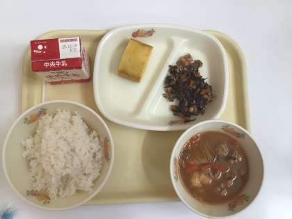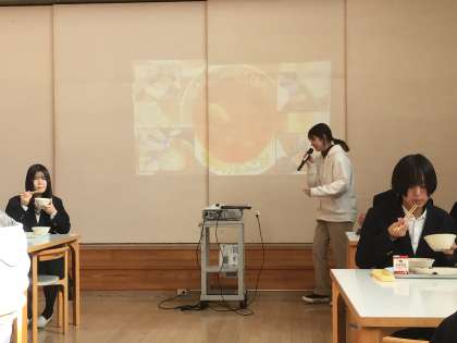 旭地区限定のメニュー「夢とろろだんご汁」です!栄養教諭が作っている様子をみせてくれました!