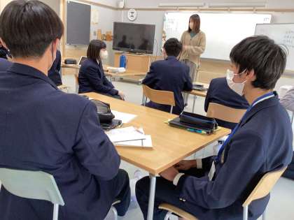 3年生の帰りの会の様子です!面接で話すことを整理するために、3年間の思い出をふりかえっていました!