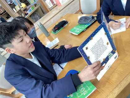 1年生の英語の様子です!英語の本を使ってビンゴをしていました!