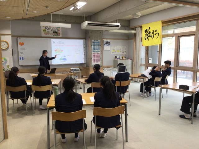 愛知県労働協会から来ていただいた講師の方に、「働く」ことや職業についてお話ししていただきました。
