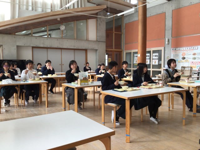 今日の給食はスペイン料理のパエリアです。健康委員会が、好きな世界の料理のアンケート結果を発表してくれました。パエリアは2番人気でした。