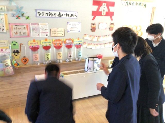 保健室前の様子です。掲示物を楽しんでいました!