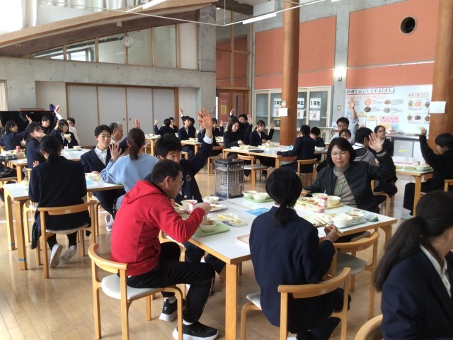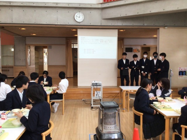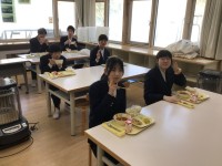 健康委員会で体や健康に関わるクイズをしました。給食のグループで答えを予想して盛り上がっていました。