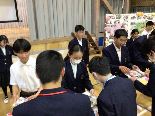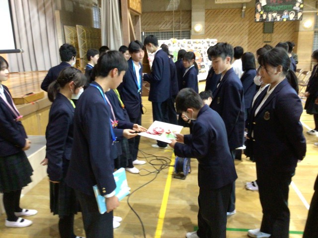 3年生からメッセージを書いた色紙を渡しました。