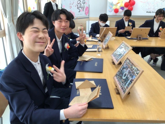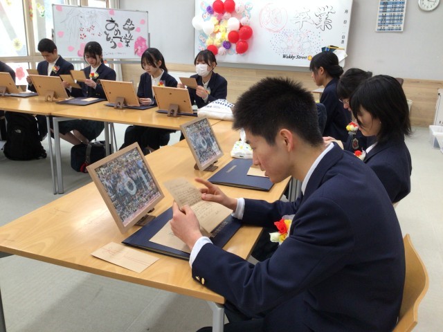 担任からのメッセージ読んでいます。