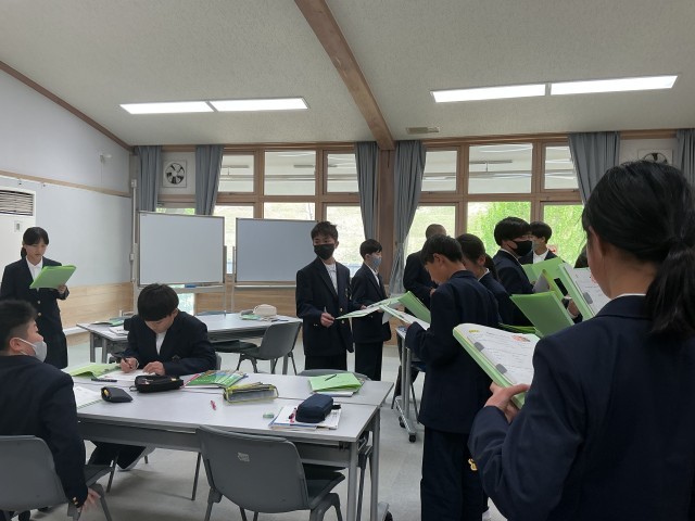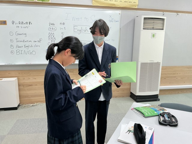 初めての英語の授業でした。ビンゴで英語に親しみました。