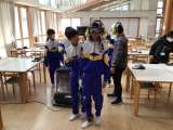 ぬくもりの里の方々に講師として来ていただき、高齢者疑似体験をしました。