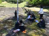 青空の下、各々の好きなもの、好きな場所をスケッチしています。