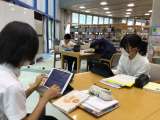 図書館で本を使いながら調べています!英語でのレポート完成を目指しています!