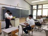「中学生の主張、意見文」で学校代表に選ばれた3年生がみんなの前でスピーチを披露し...
