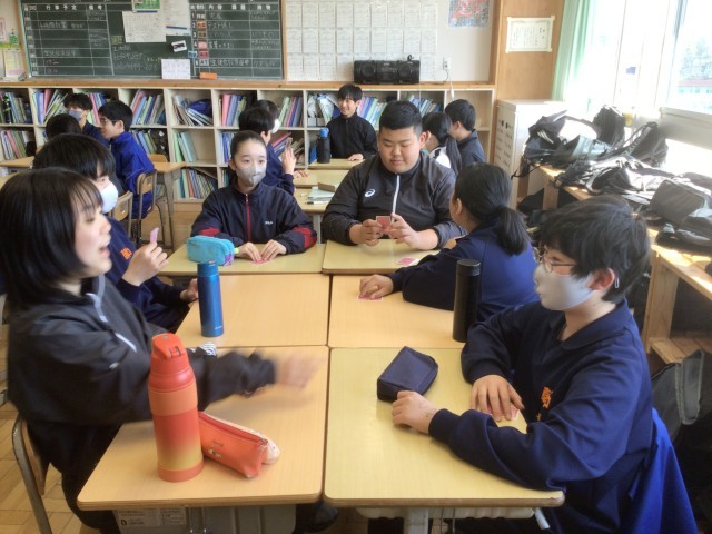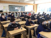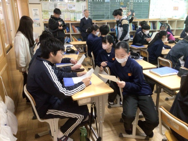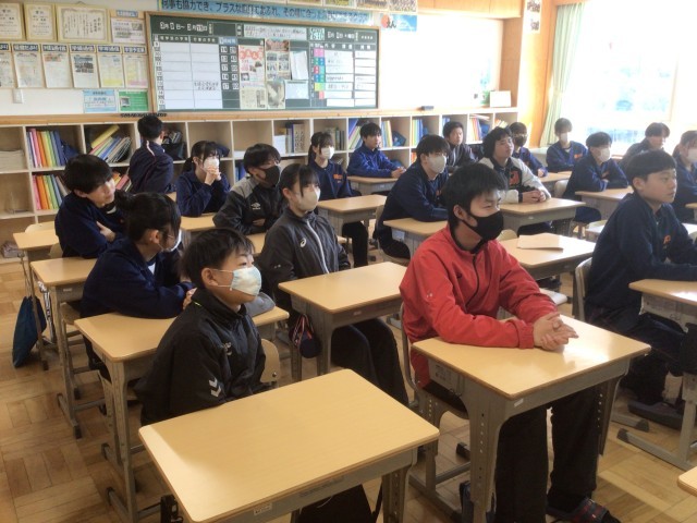 37学級の道徳です。卒業を前に、学年主任の先生が授業を行っています。