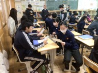 1・2年生合同の合唱練習です。発声練習の後、卒業関係の歌を練習します。