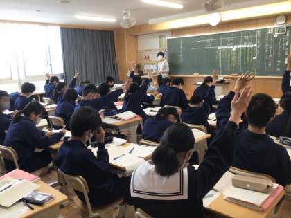 21学級国語の授業です。よく手が挙がっています。