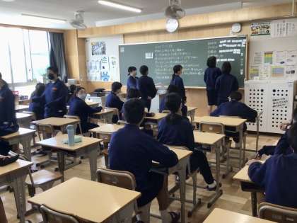 2年5組 と6組の様子です。 朝の活動時間を使って、体育祭のことを進めています。