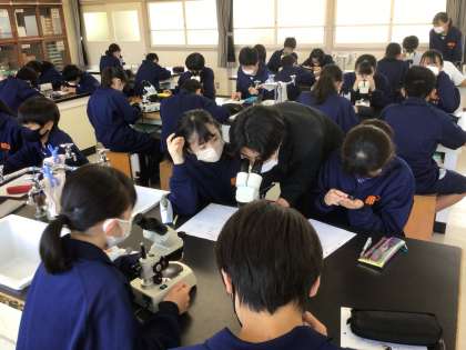 4/25(月)理科室での授業 顕微鏡 公開日 2022/04/25 更新日 2022/04/25 各学年から 顕微鏡を使っての授業です。 生徒は興味をもって授業に集中しています。 タンポポをスケッチすることができましたか? 1年6組です。 1年