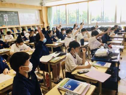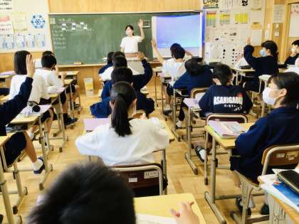 世界の国々のことについて学んでいました。 1年4組です。