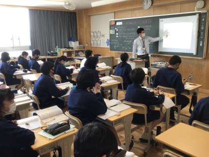 3年2組 社会科 3年3組 理科 3年5組 数学の授業です。 真剣です。
