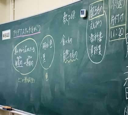 1年5組 美術の授業です。 アイディアスケッチを描こうです。