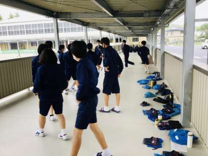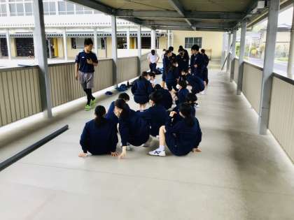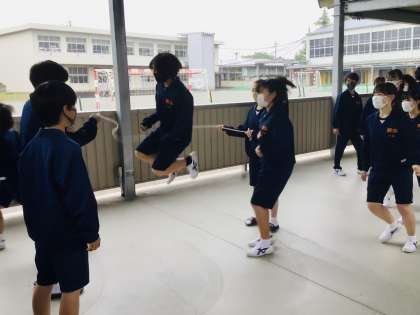 4/26(火)午後の体育祭練習 公開日 2022/04/26 更新日 2022/04/26 各学年から あいにくの雨で、室内での練習となりました。 渡りでは、2年生が8の字飛びや台風の目を練習していました。 2年