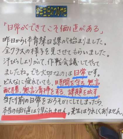 あいさつ、掃除、授業の様子が、しっかりできていてこそ、行事での活躍が生きてくるのではないかと思います。