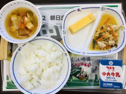 5/2(月)今日の給食!! 公開日 2022/05/02 更新日 2022/05/02 校長室から 今日の給食は、こどもの日献立です。 ⭐️山菜混ぜご飯 ✳️厚焼き卵 ⭐️けんちん汁 ✳️柏餅などでした。