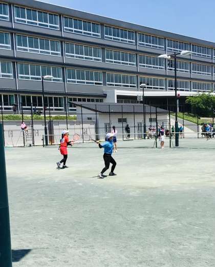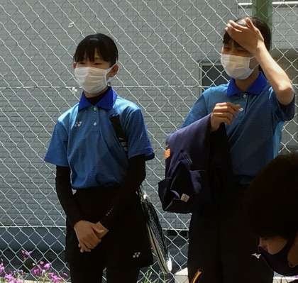 試合の合間の礼儀正しさが印象的なソフトテニス部女子です。