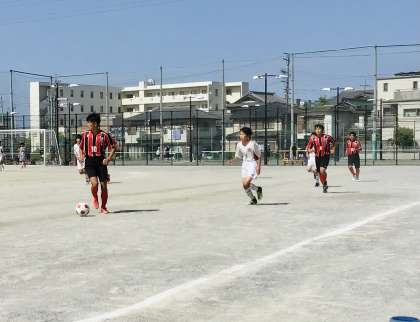 本日、本校にて、昨日県大会優勝をしたサッカー部が、リーグ戦を行いました。