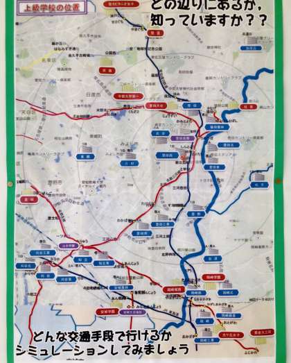 高校までの位置関係がわかる地図が、3年生廊下に掲示されていました。