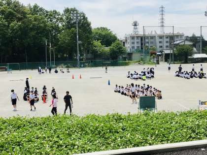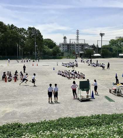 2年3組、4組 1、2、3学級が保健体育を行っています。