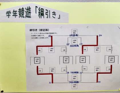 3年綱引きの結果と当日の予定です。