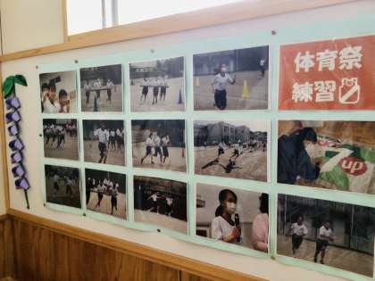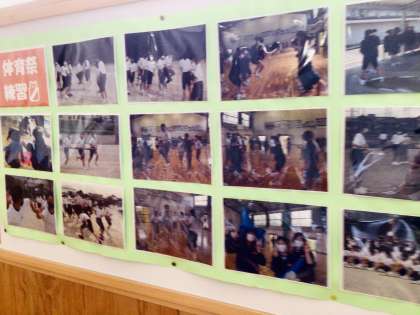 2年生の学年掲示板より 体育祭の練習の様子が掲示してあります。
