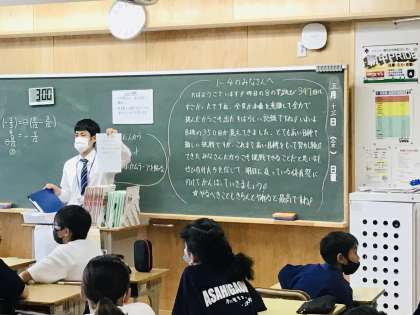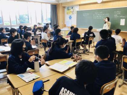 5/13(金)1年8組、4組の様子 公開日 2022/05/13 更新日 2022/05/13 各学年から 8組は副担任の鈴木菜絵先生が朝の会を行っています。 担任の渡邊先生は、後ろから見ています。 1年