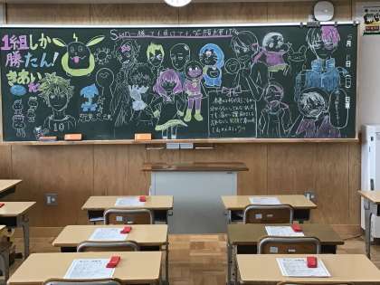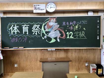 5/15(日)体育祭に向けての黒板メッセージ 公開日 2022/05/15 更新日 2022/05/15 各学年から 体育祭に向けての黒板メッセージです。 1、2、3学級 11、12学級です。 1年 特別支援学級