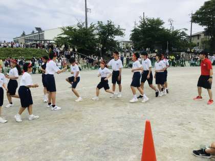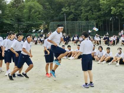 声を掛け合って、リズムよく跳んでいます。
