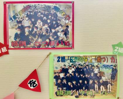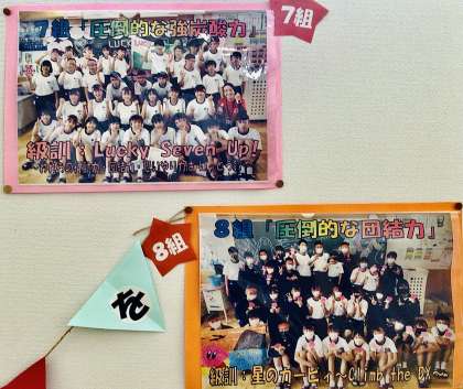 2年生の体育祭後の学級写真を掲示板にて見つけました。
