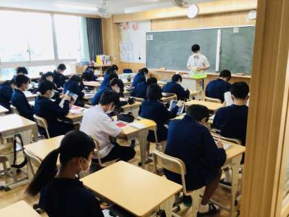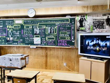 3年生の学習に取り組む様子です。 3年8組 7組 社会科の板書の様子です。