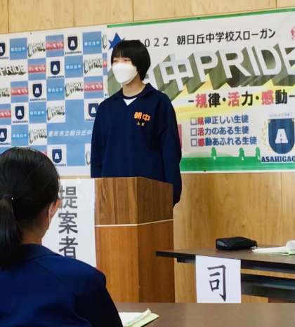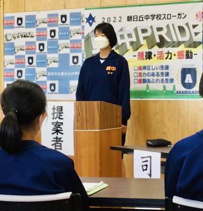 生徒会役員が、生徒会提案を最初に行いました。